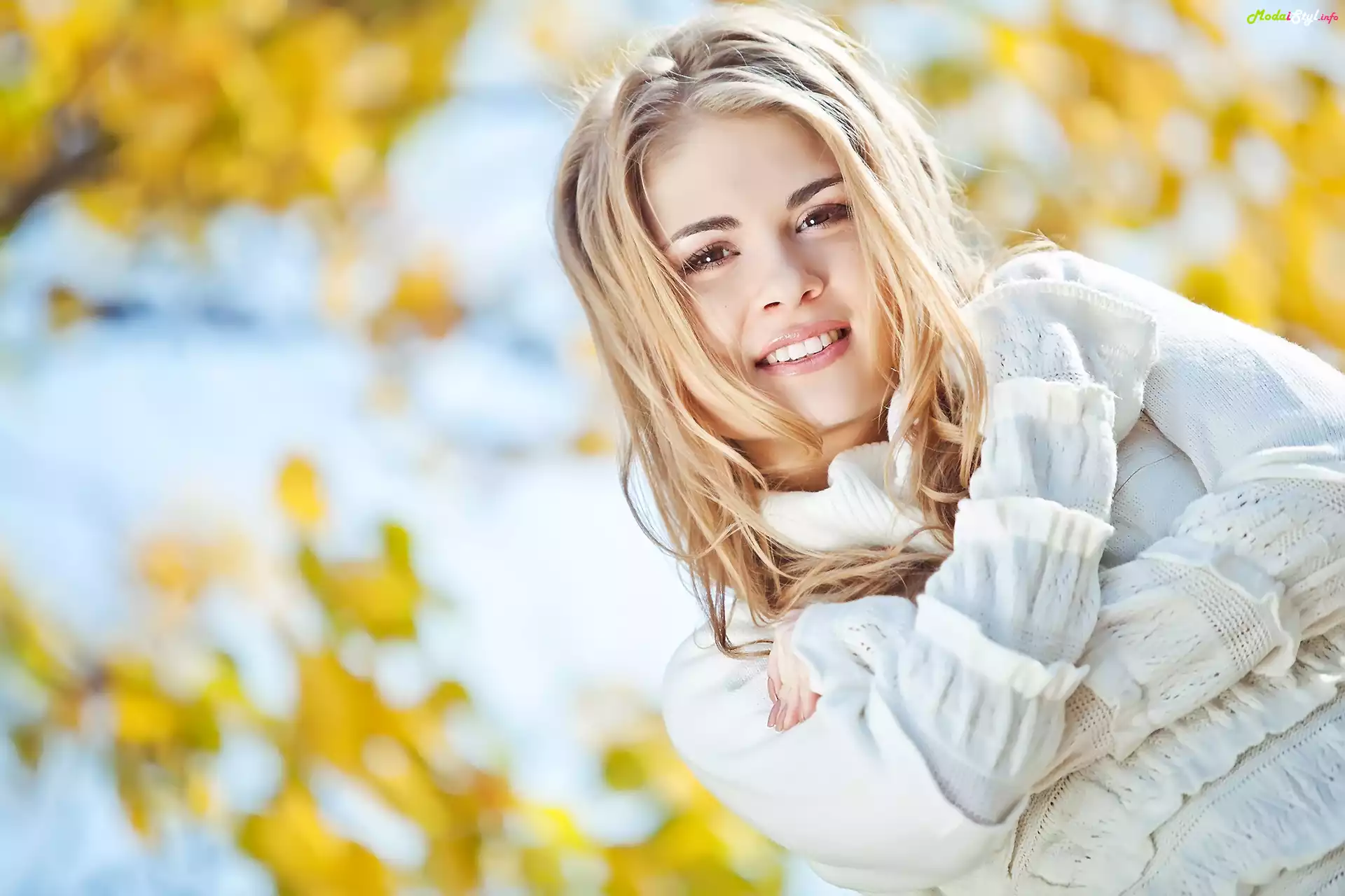 Blondynka, Uśmiech, Biały, Sweterek, Moda, Moda i Styl