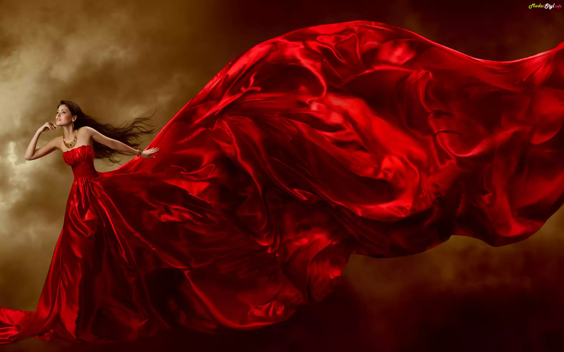 Brunetka, Moda, Styl, Czerwona, Suknia, Moda i Styl