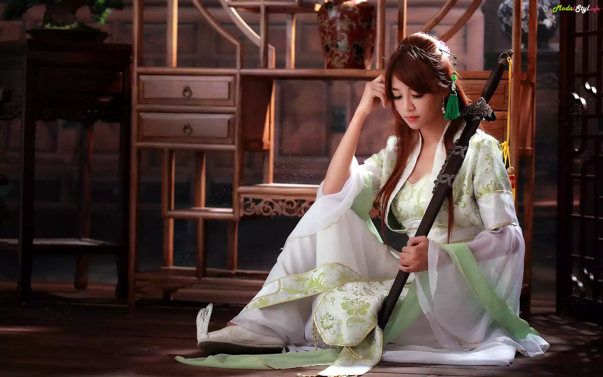 Brunetka, Azjatka, Makijaż, Moda, Miecz, Moda i Styl