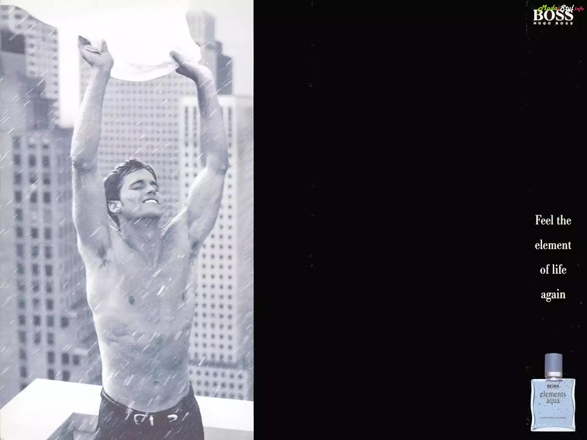 Hugo Boss, mężczyzna, deszcz, flakon, perfumy
