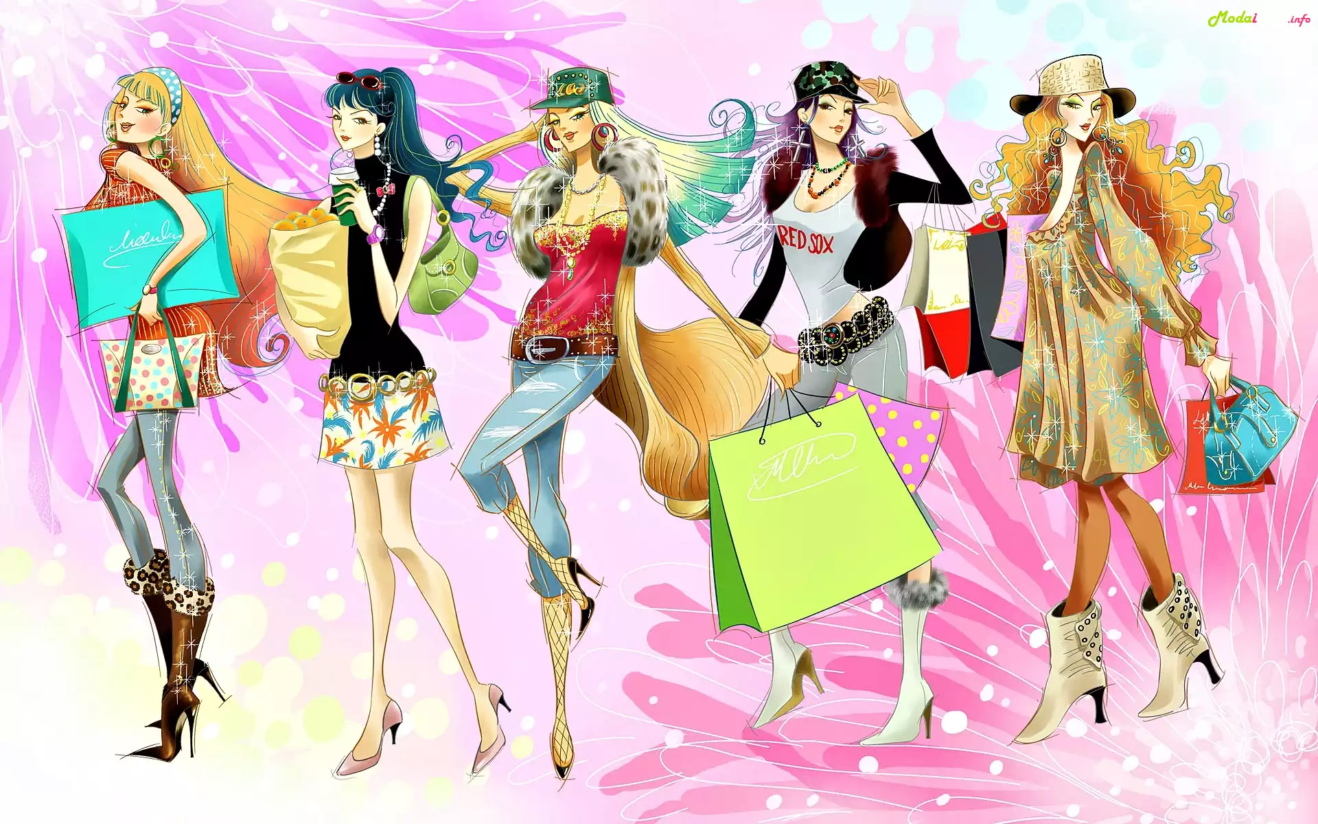 Moda i Styl, Modelki, Kolorowe, Stroje, Rysunek, Moda i Styl