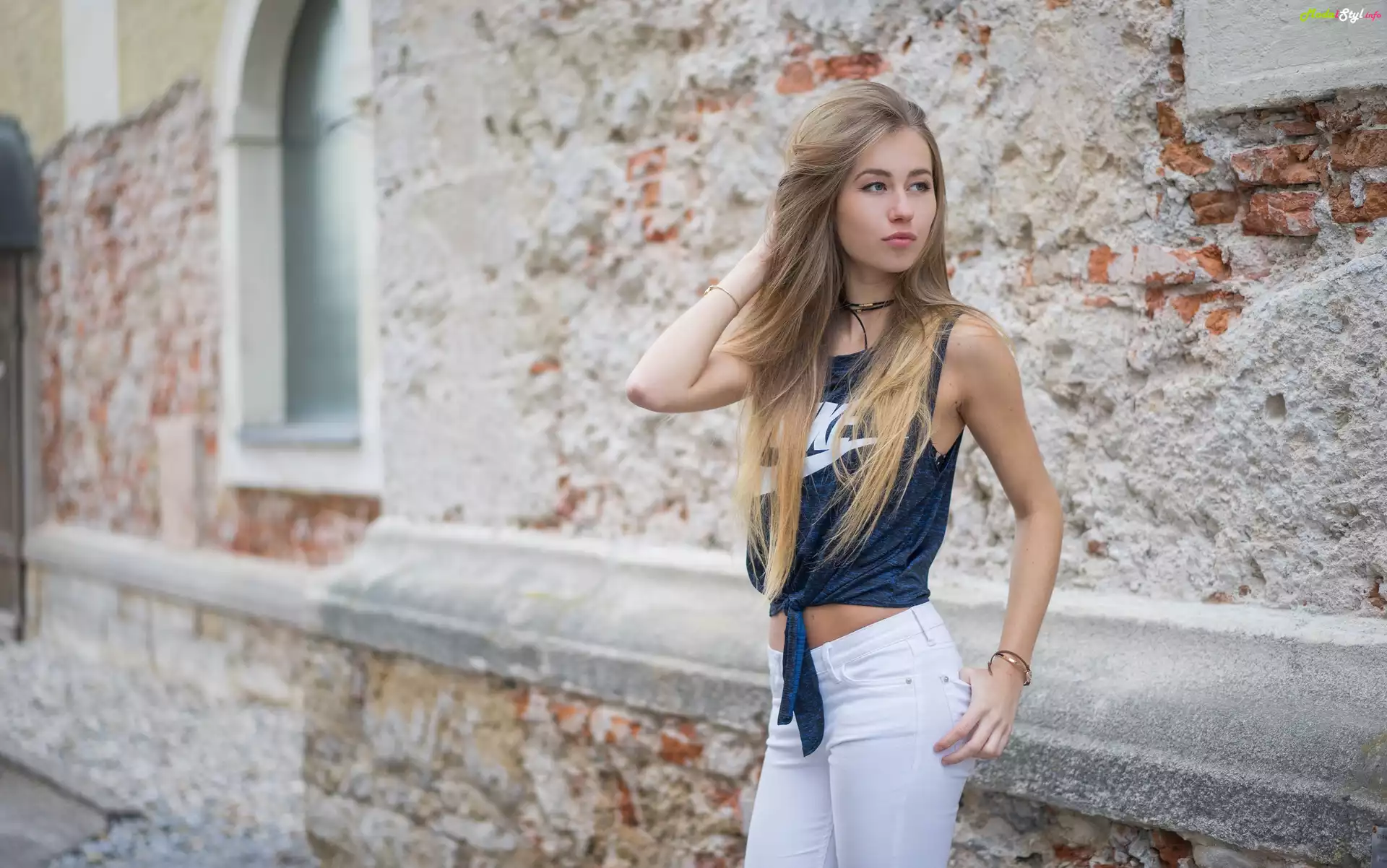 Jasnowłosa, Dziewczyna, Białe, Spodnie