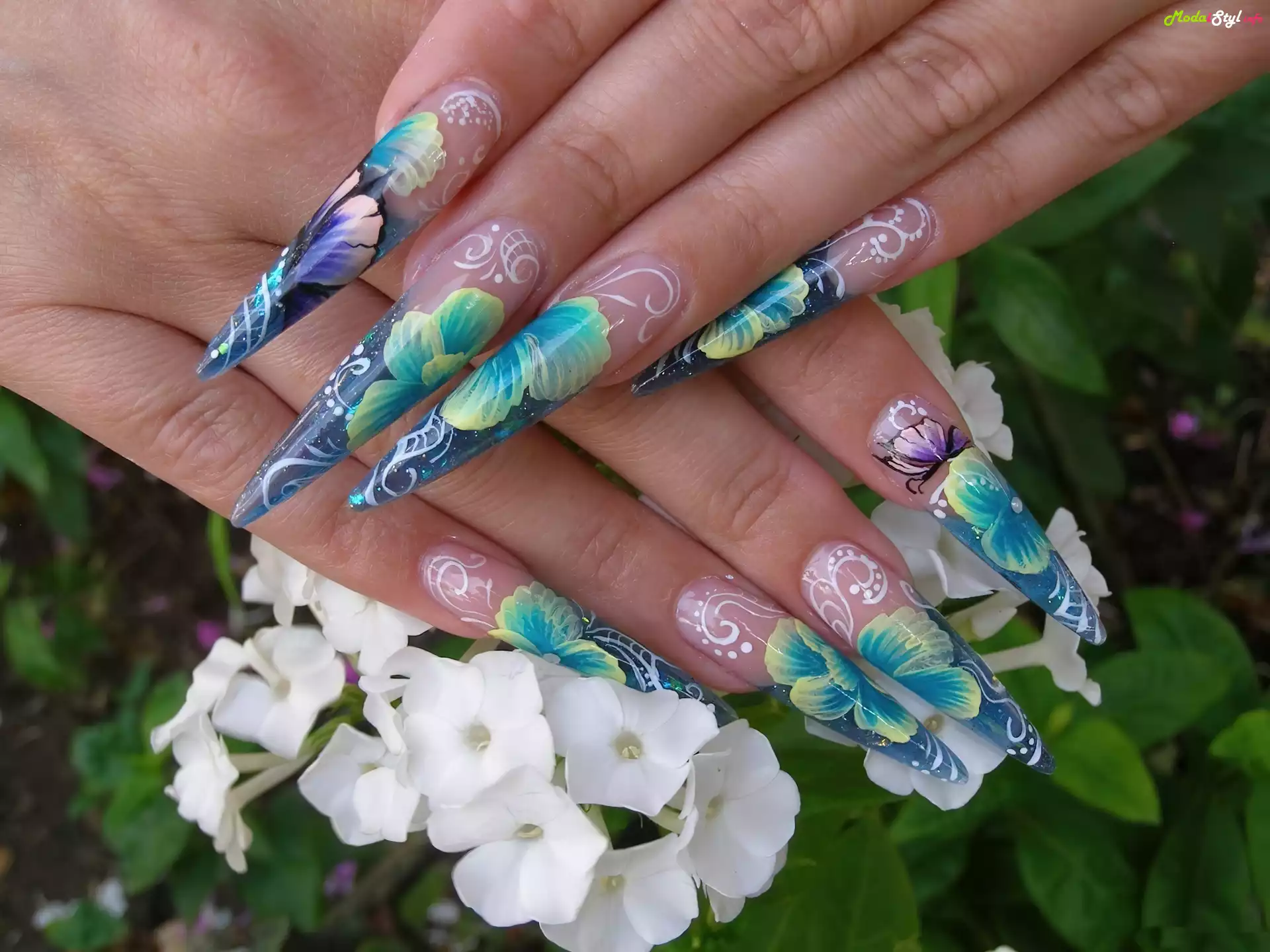 Kobiece, Dłonie, Kolorowe, Paznokcie, Kwiaty, Moda i Styl