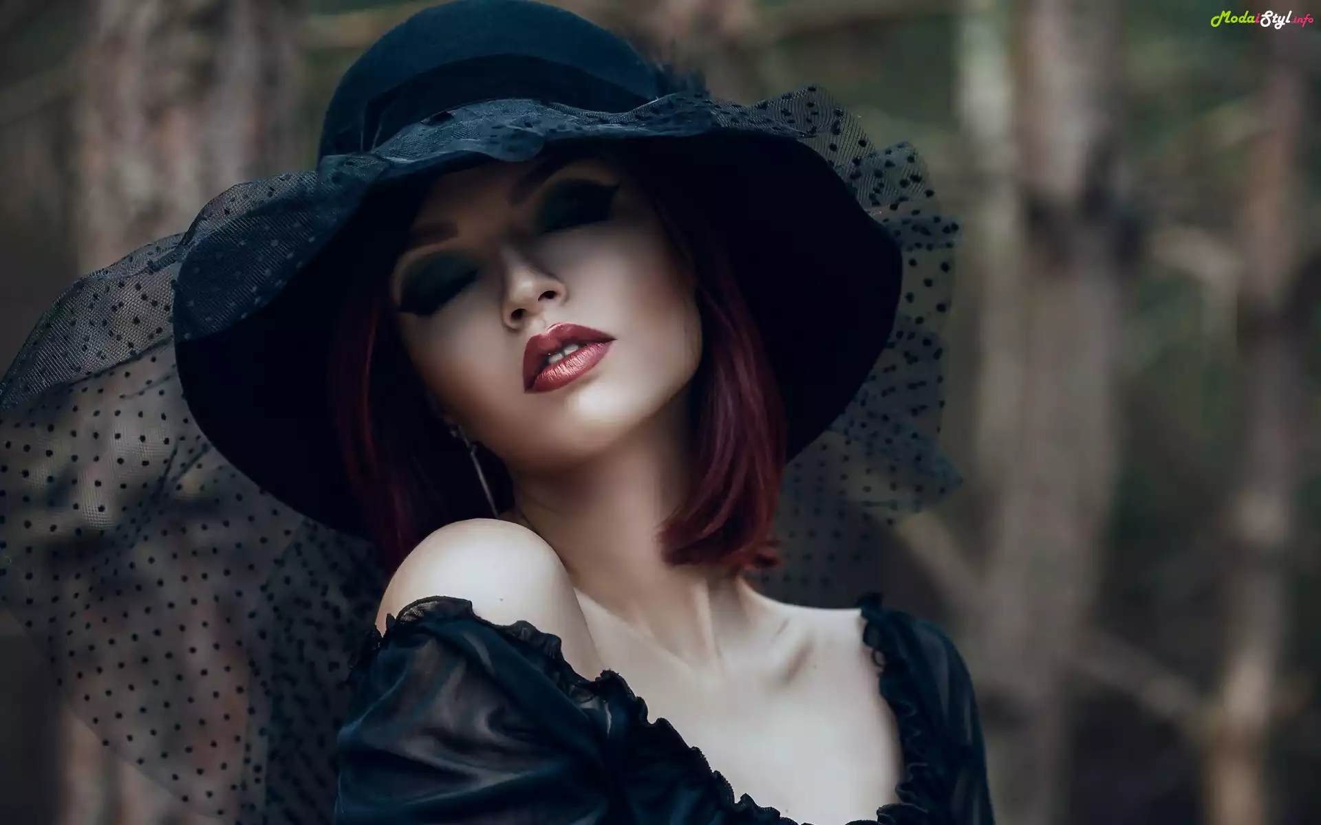 Kobieta, Makijaż, Moda, Czarny, Kapelusz, Woalka, Moda i Styl
