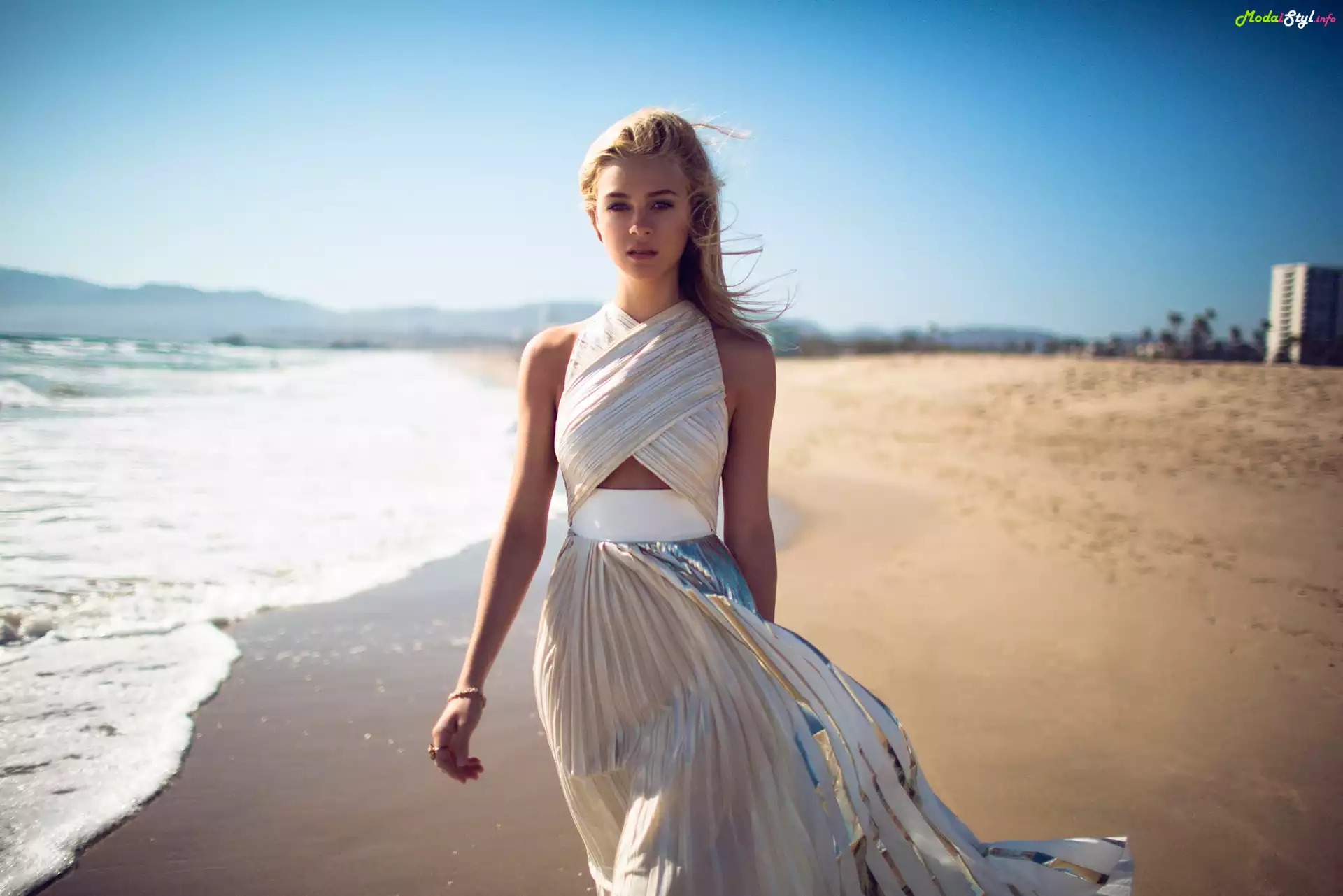 Kobieta, Biała, Sukienka, Morze, Plaża, styl, Moda i Styl