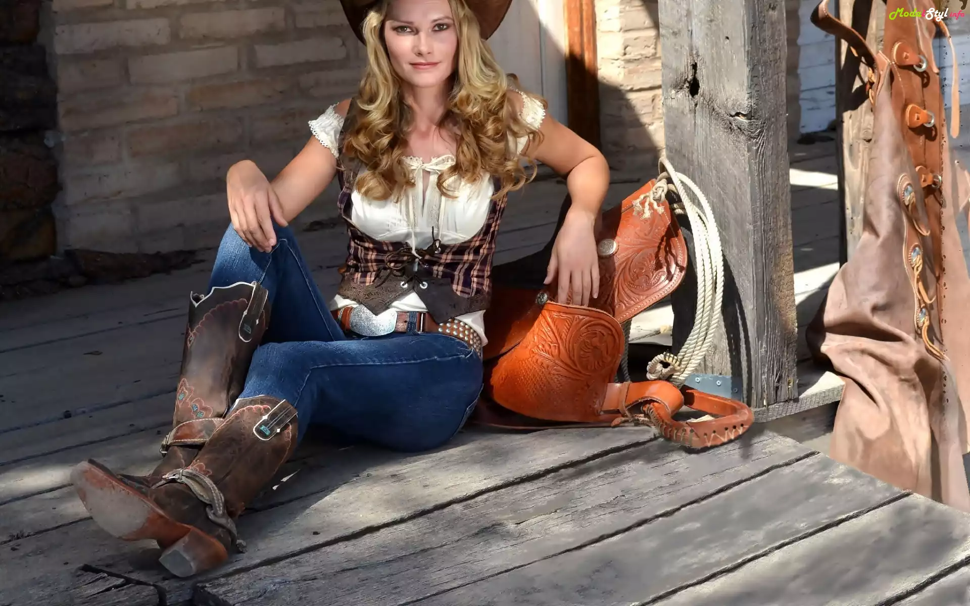 Kobieta, Moda, Styl, Kowbojka, Siodło, Kapelusz, Moda i Styl