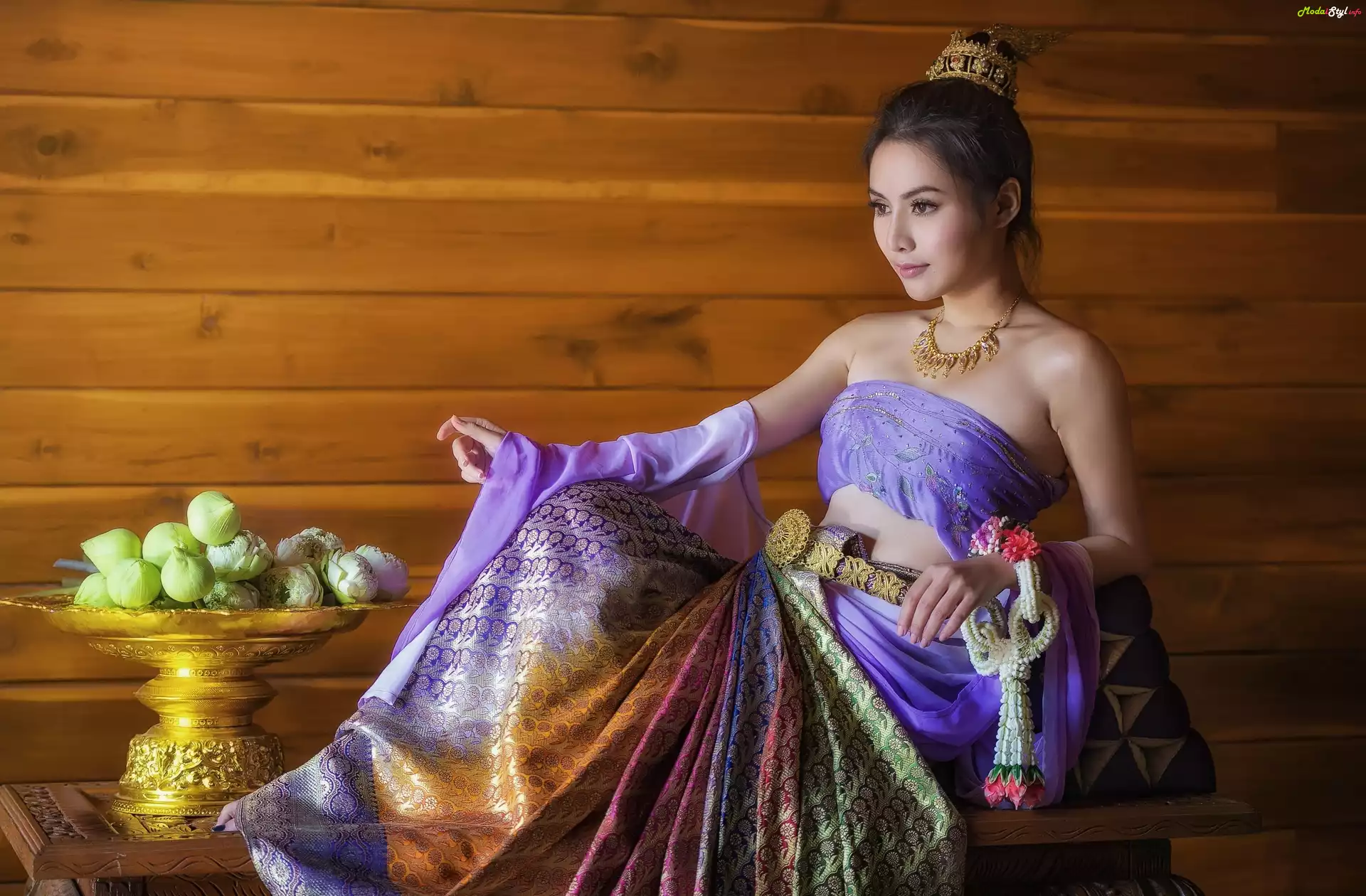Brunetka, Strój, Orientalny, Moda i Styl