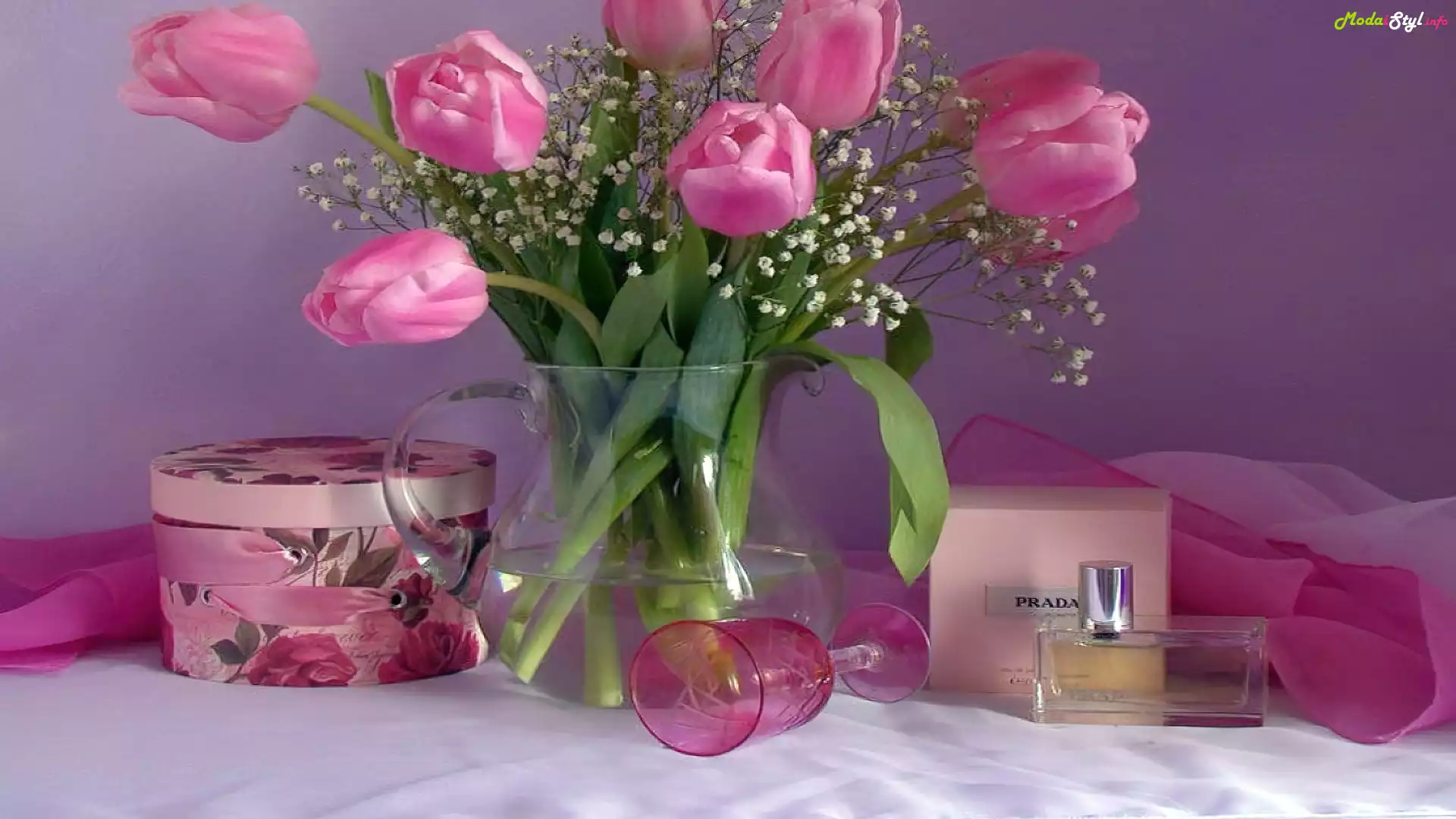Wazon, Różowe, Tulipany, Perfumy, Prada Prada, kobieta, biżuteria, torebka Prada, kobieta, flakon, perfumy